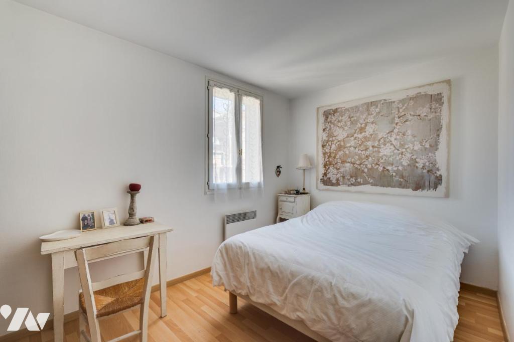 Les deux chambres disposent chacune d’une fenêtre donnant sur la terrasse, apportant une belle luminosité à l’espace nuit. L’appartement peut être vendu entièrement meublé et décoré selon vos envies.
