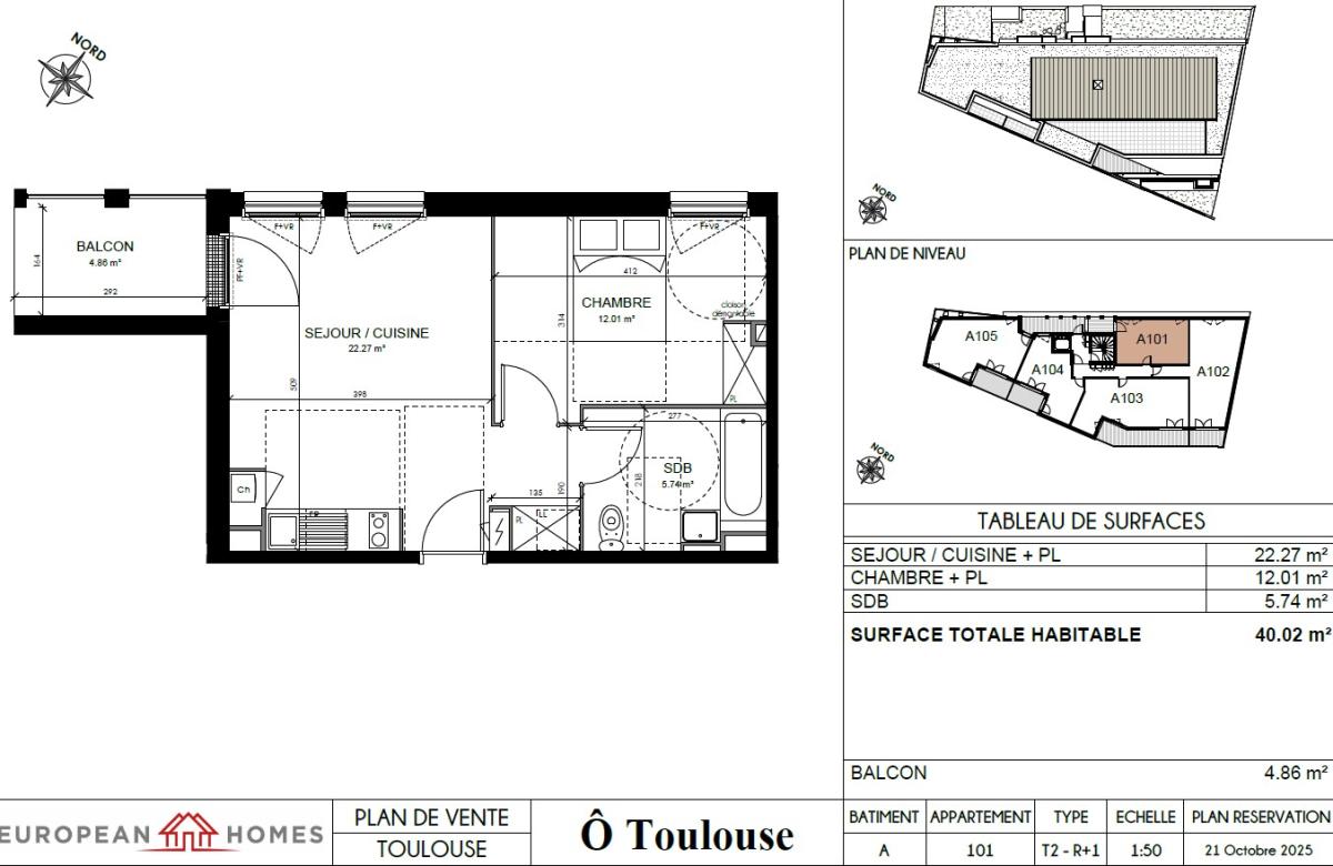 Cet appartement de type T2 à vendre sur plan, dispose d’un espace extérieur de 4.86m2 et d’un intérieur à choisir selon vos gouts cuisine et salle de bains.