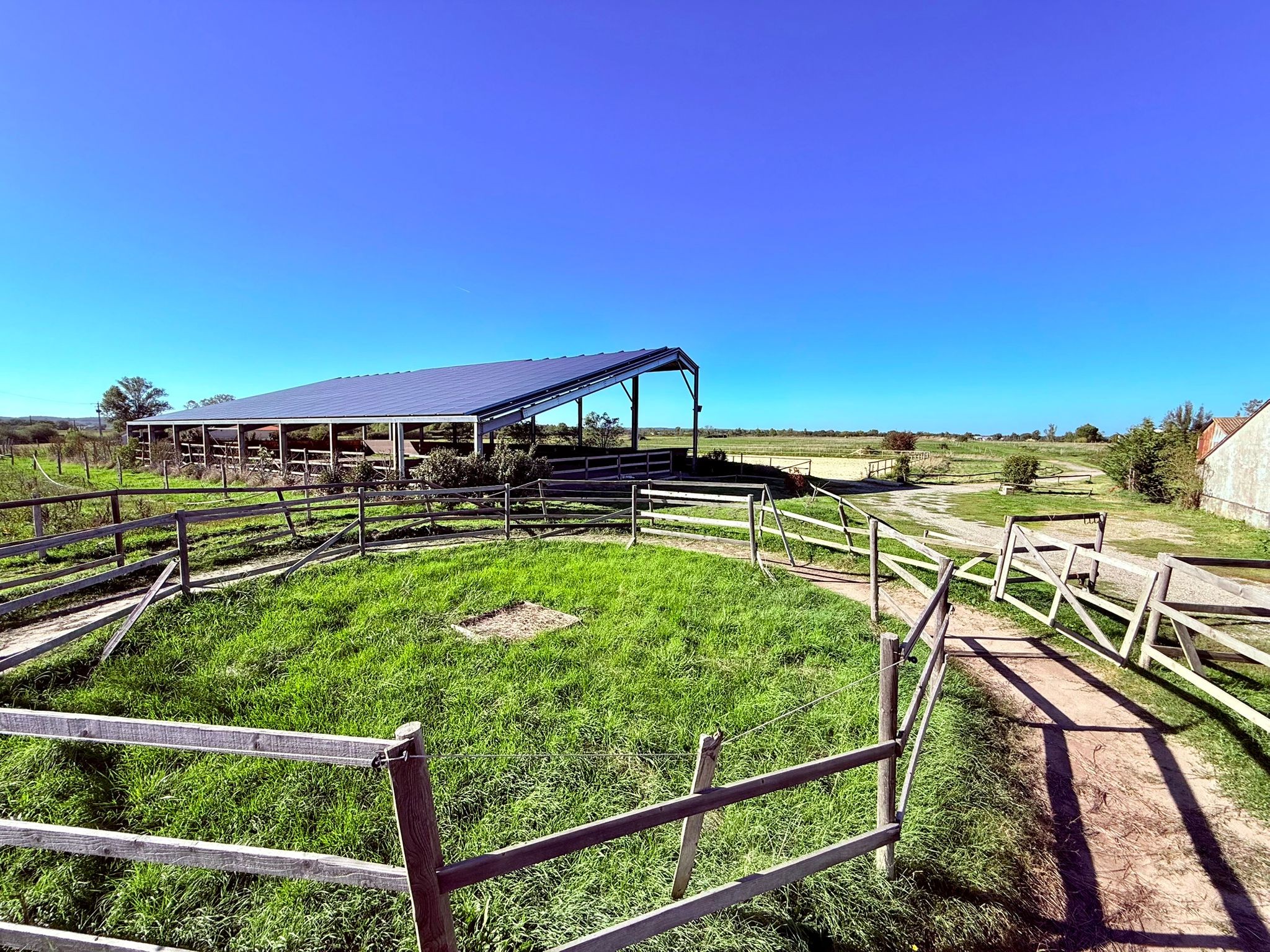 Ecurie fonctionnelle et professionnelle disposant d’une trentaine de box, aire de pansage de 6 chevaux, sellerie spacieuse, une carrière, un manège, un rond de longe, une piste de galop, de nombreux paddocks le tout irrigable. Véritable paradis pour chevaux cette structure vous permettra de travailler vos chevaux dans les meilleurs conditions tout en respectant le bien être de l’animal.