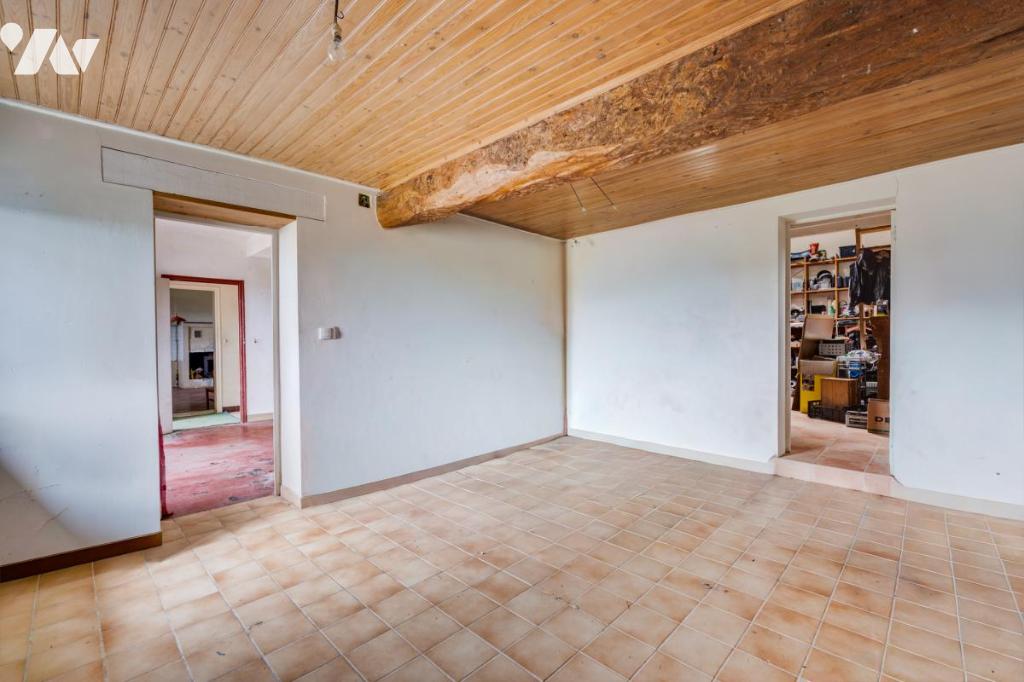 La maison se compose actuellement d’une cuisine, d’un salon / salle à manger avec cheminée, de trois chambres ainsi que d’une salle d’eau avec WC. L’organisation intérieure permet d’envisager différents projets d’aménagement selon vos besoins : agrandissement des espaces de vie, création de suites, ou redistribution complète des volumes.