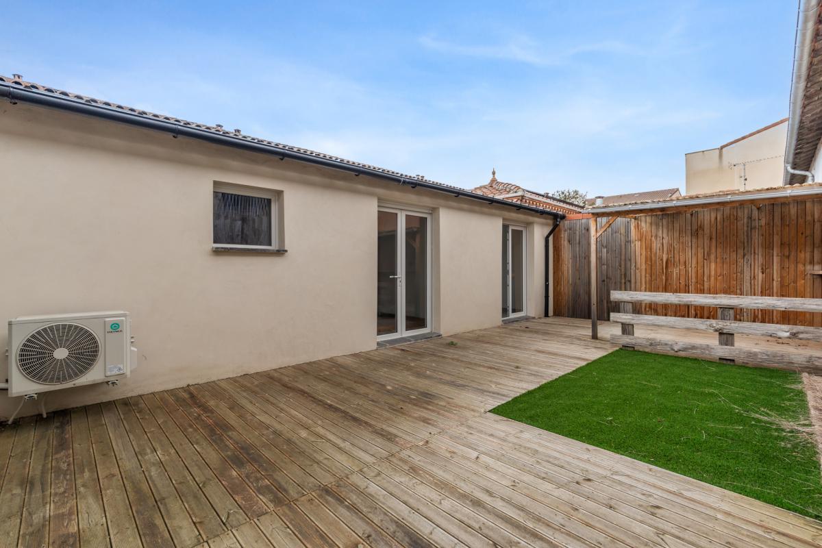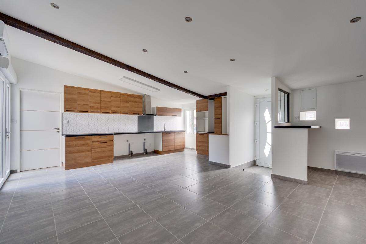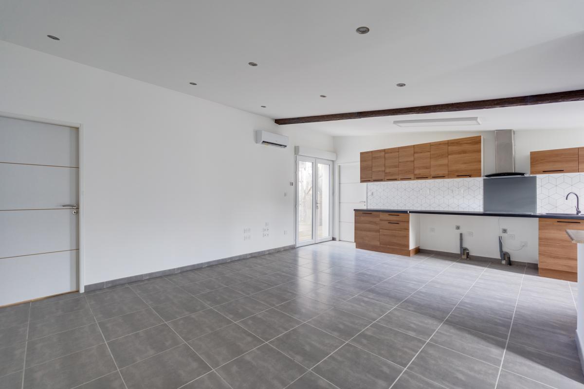 Maison de plein pied de 87 m² entièrement rénovée avec soins. Elle se compose d’une entrée avec un coin bureau rangement, un vaste séjour ouverte sur une cuisine équipée et ouverte sur le salon. Une chambre parentale avec wc, et salle d’eau, deux autres chambres avec une salle d’eau. Toutes les pièces s’ouvrent vers un jardin extérieur aménagé et intimiste. Le chauffage est effectué par une climatisation réversible. La maison est à quelques mètres des écoles, commerces et toutes les commodités nécessaires.