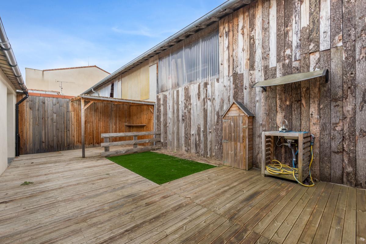À l’extérieur, vous profiterez d’un espace intime et agréable, comprenant une terrasse conviviale, une piscine avec volet roulant et un abri de jardin, parfaits pour les moments de détente en famille ou entre amis.