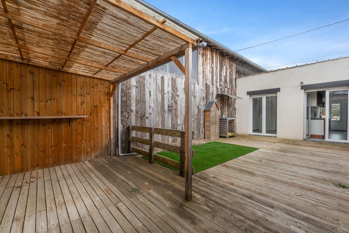 À l’extérieur, la propriété offre un terrain généreux de 1.500 m², idéal pour profiter de la nature ou envisager l’installation d’une piscine. Une grande terrasse carrelée avec barbecue permet de profiter pleinement des beaux jours. Un carport en dur ainsi qu’un atelier complètent les prestations de cette maison fonctionnelle et agréable à vivre.